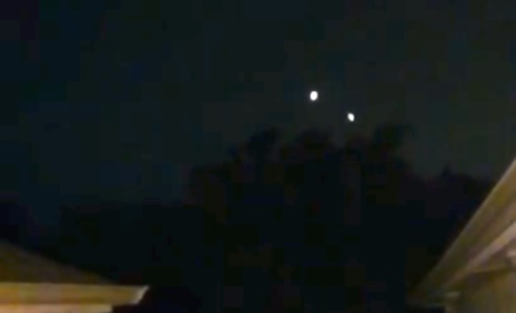 A bright white light turns into two and spreads apart over the skies of Houston in early November.